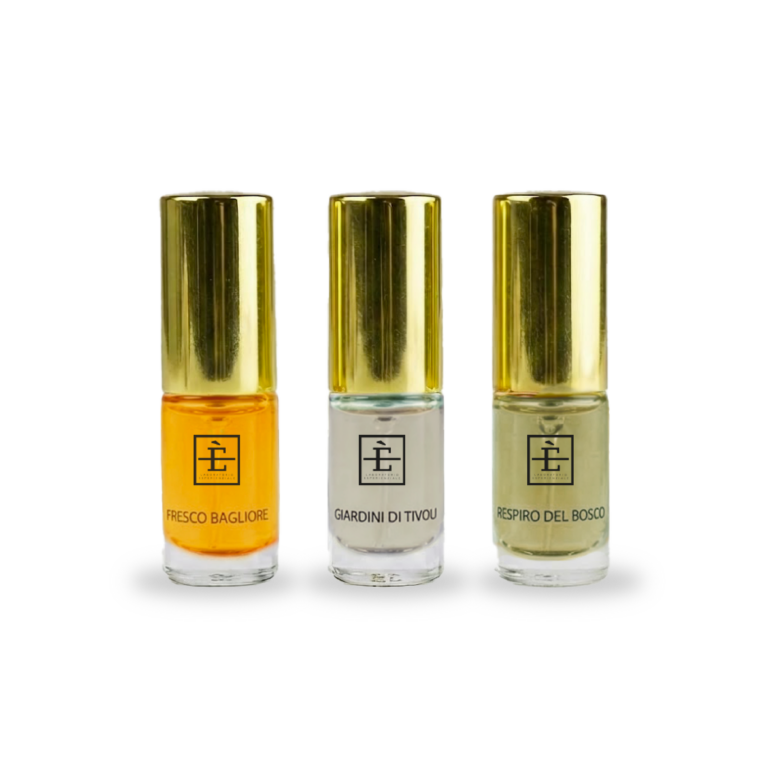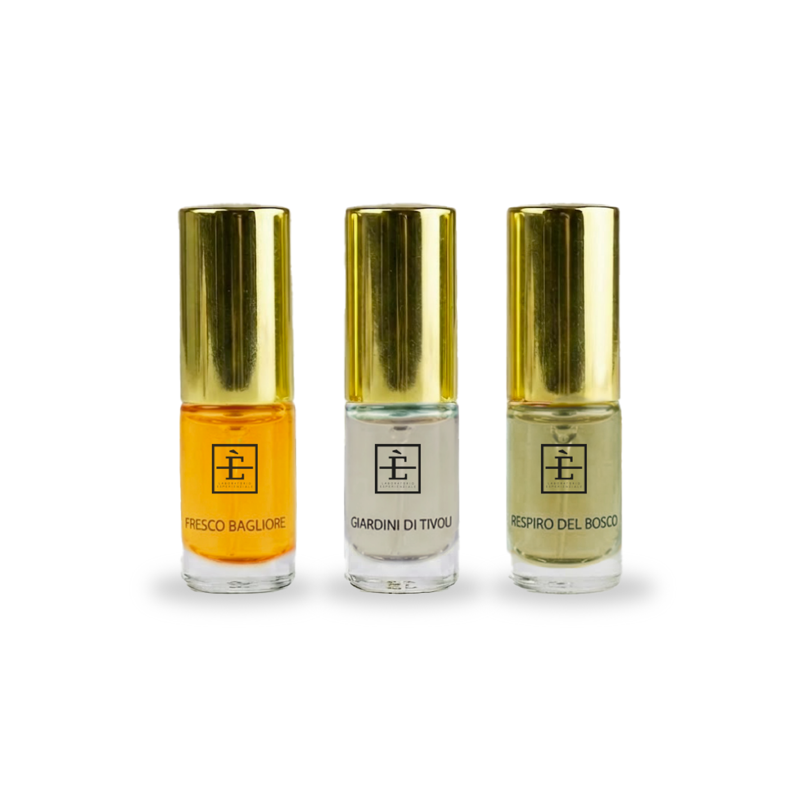 Una parentesi d’aria dentro il rumore. Tre freschezze diverse, ma mai distanti. Presenze leggere, che non si impongono, ma restano. Fresco Bagliore è il mattino assoluto, quando l’estate è ancora promessa e l’aria profuma di limoni e sale. Respiro del Bosco è la libertà che ha l’odore della terra viva e della pelle calda di sole. Giardini di Tivoli è memoria della quiete, la delicatezza dei gesti familiari, un ritorno che non sa di nostalgia.